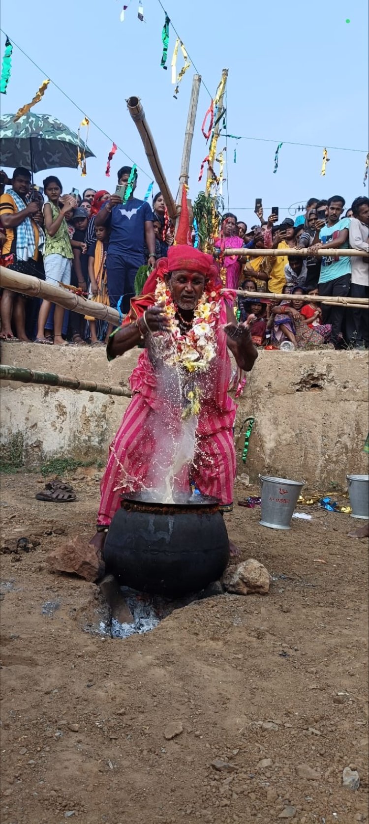 Mother's procession has been held in Dhumdham today at Ma'basulei Pith of Rangmatia village। On this occasion, Lord Maharana, who was dying, was hanged in the abyss। On the other hand, the other people and the people were walking in the fire of the fort। More than 50 people attended this institution of 50 years। For the past seven days, the mentally ill were lying on the mother's pedestal। Every day, with the intention of asking for the surrounding area, he used to go around and eat the sand in the pithas of various village deities। While everyone participated in the march yesterday, today he joined the march and put the fire in his mouth and tested it in the presence of thousands of devotees। On this occasion, 7 fire pits and 14 more vehicles were dug in Rangmatia Yatra area। When the villagers came around the village in the afternoon, Yamuna went to the nearby pond to bathe and came to the Yatra area wearing new clothes। Later, taking part in a homam yajna, he went to the Jhamu Yatra area and went on fire, and the people hanged themselves in the fire। At the end of the journey, the Kashi gave orders to some of the mentally ill devotees who were lying on the pedestal। On behalf of the Rangmatia Jhamu Yatra Committee, all the devotees were given fruits। Similarly, Jhamu Yatra has been established today at Gramdevati Ma'amangala's Peetha in Kalyanpur Panchayat Kalajhari Oostpada village। On the journey where the chief Kashi Rohit Samal was batuashuni, Ma’ was attached। More than 20 Patuas joined the Jhamu Yatra and rolled in the sand from morning till noon। In the afternoon, hot milk was prepared in a large brass pot at Jhamu Yatra area। In which the chief Kashi Rohit shook hands and ate milk। Among others, three Kashi and other Patuas conducted a devotional test on the fire of the fort inside a 5-foot hole। Prasad consumption and bel pana were prepared for the hundreds of devotees present in this absa। North Bhubaneswar MLA Sushant Rautharai joined and distributed leaves to the devotees।