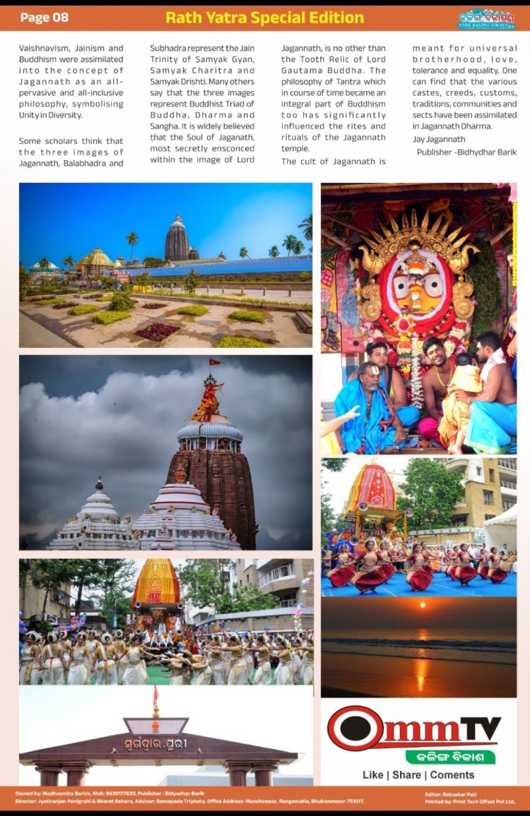 The cult of Jagannath is meant for universal brotherhood, love, tolerance and equality. One can find that the various castes, creeds, customs, traditions, communities and sects have been assimilated in Jagannath Dharma.Jay Jagannath